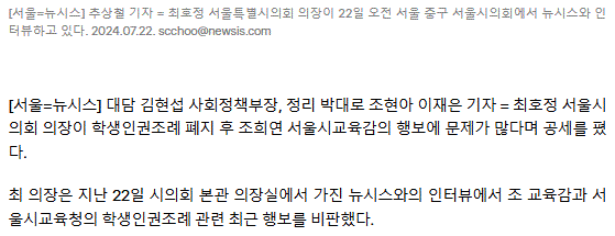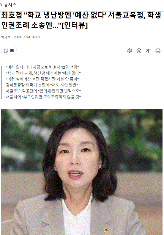 최호정 "학교 냉난방엔 '예산 없다' 서울교육청, 학생인권조례 소송엔…"[인터뷰]