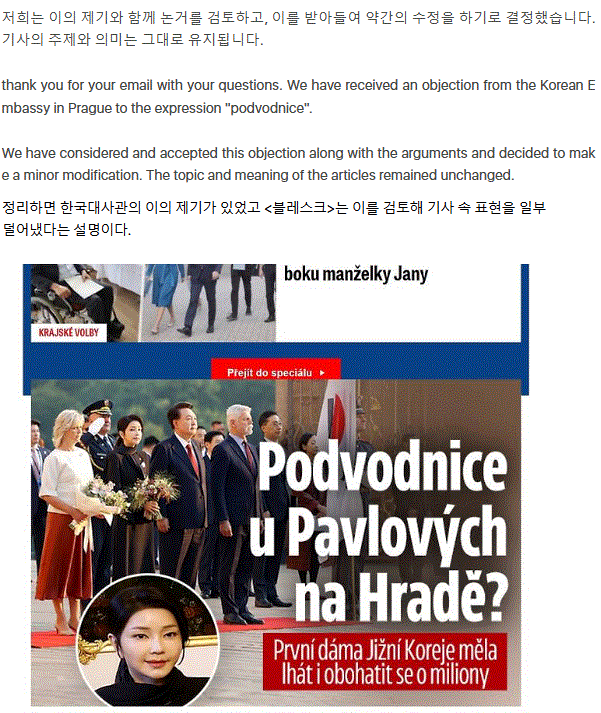 [단독]"'김건희 사기꾼' 표현, 한국대사관 이의 제기로 수정"