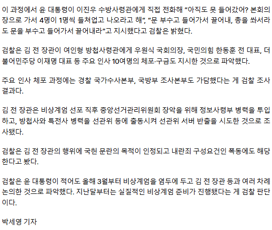검찰 “尹, ‘총 쏴서라도 문 부수고 끌어내라’ ‘정치인 10명 체포’ 지시… 해제돼도 2차, 3차 계엄”