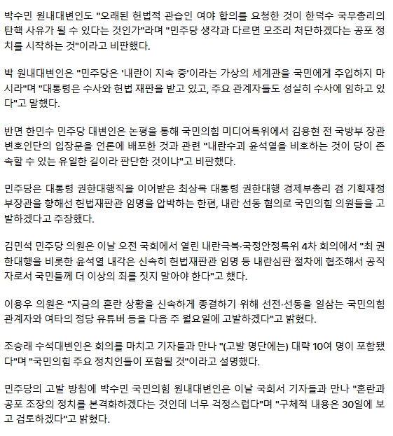 국힘 "韓 탄핵은 정부 붕괴 시도" vs 민주 "與 인사들 내란선전죄로 고발"(종합)