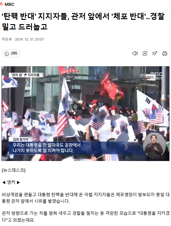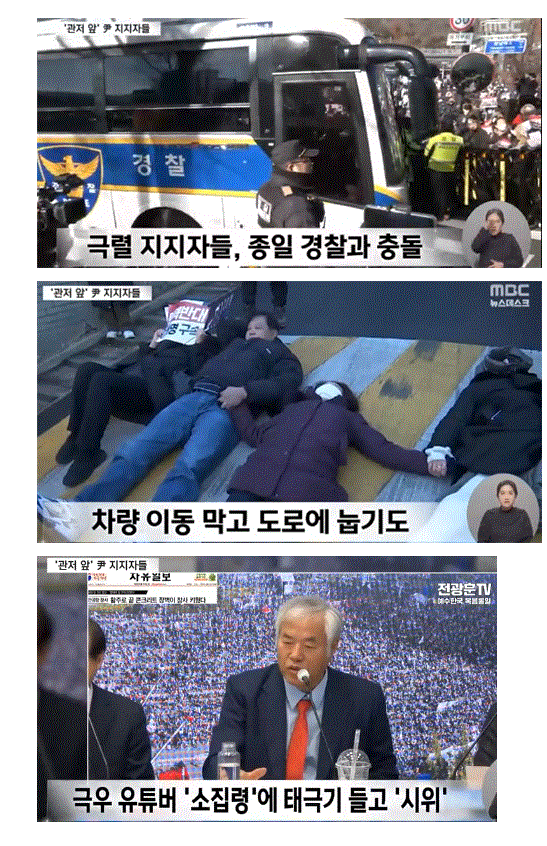 '탄핵 반대' 지지자들, 관저 앞에서 '체포 반대'‥ 경찰 밀고 드러눕고 ㅡ내란 동조 세력 자처