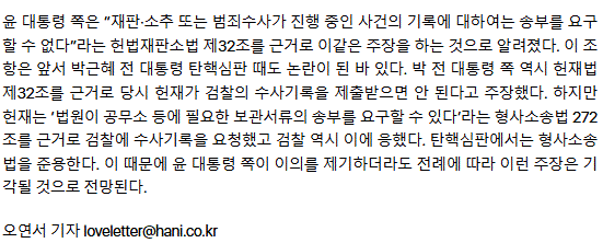 [단독] 불리한 기록 막는 윤석열 쪽… 헌재에 “수사기록 제출 요구 말아달라” ㅡ 뻔뻔해
