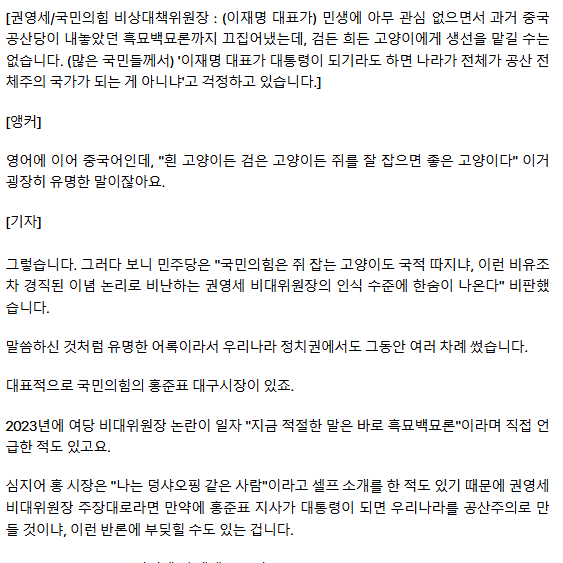 [돌비뉴스] '흑묘백묘' 꺼낸 이재명은 친중? 국민의힘도 많이 썼는데…ㅡ 전체주의하려고 계엄한 국힘이 남에게 뒤집어 씌워