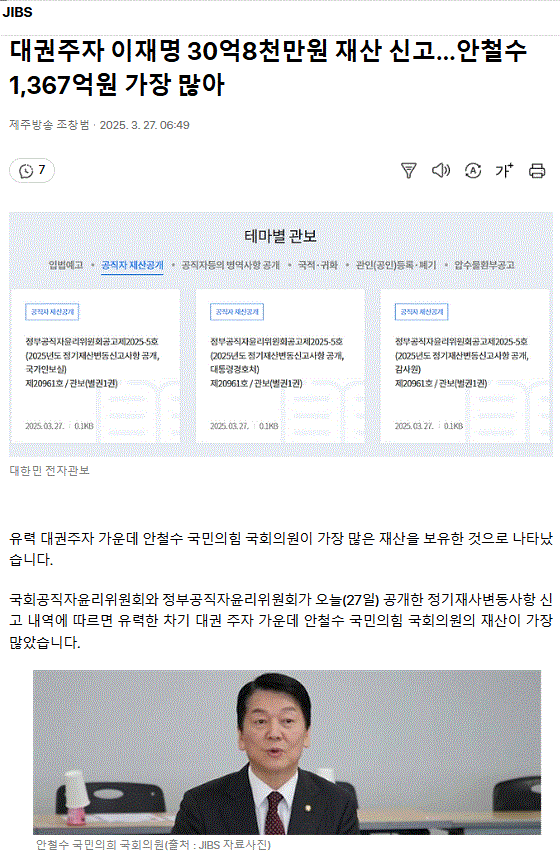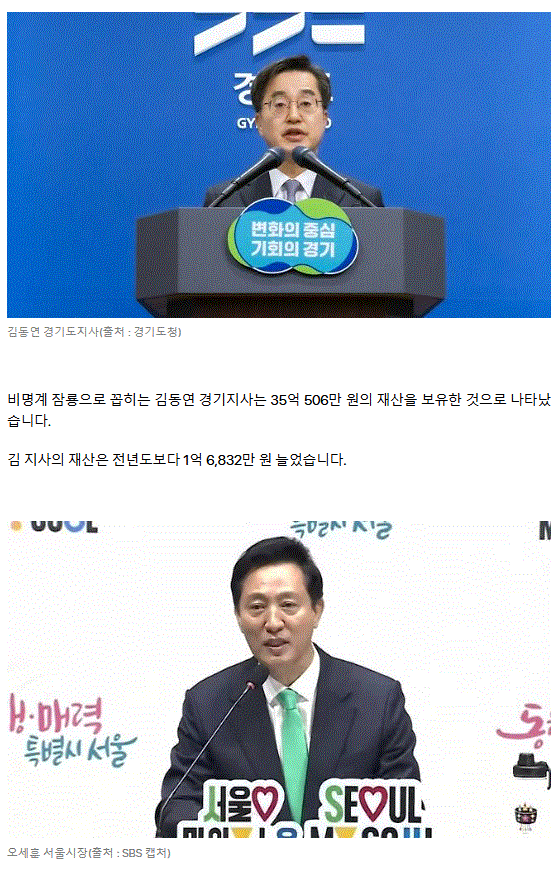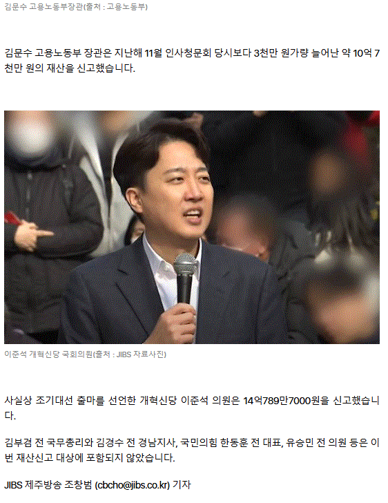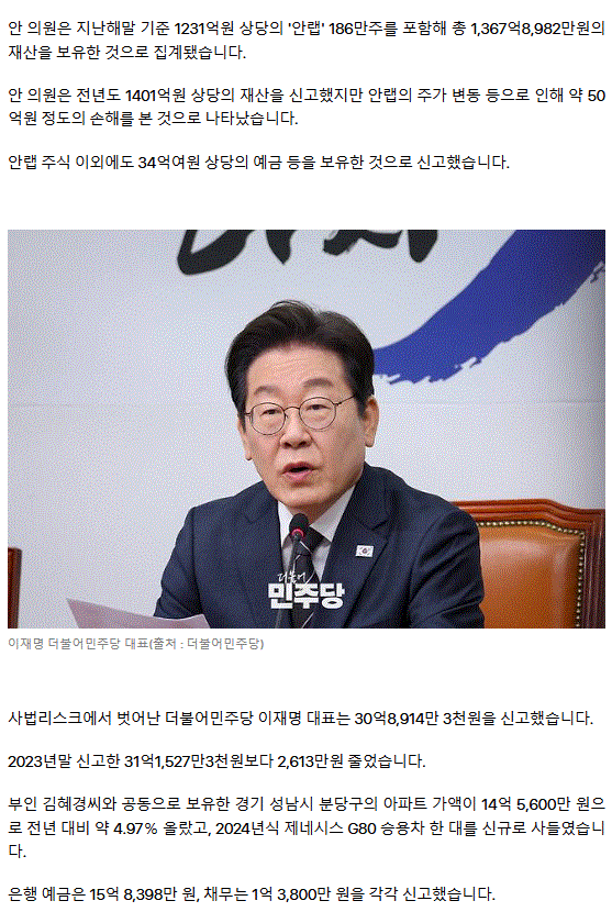 대권주자 이재명 30억8천만원 재산 신고... 안철수 1,367억원 가장 많아