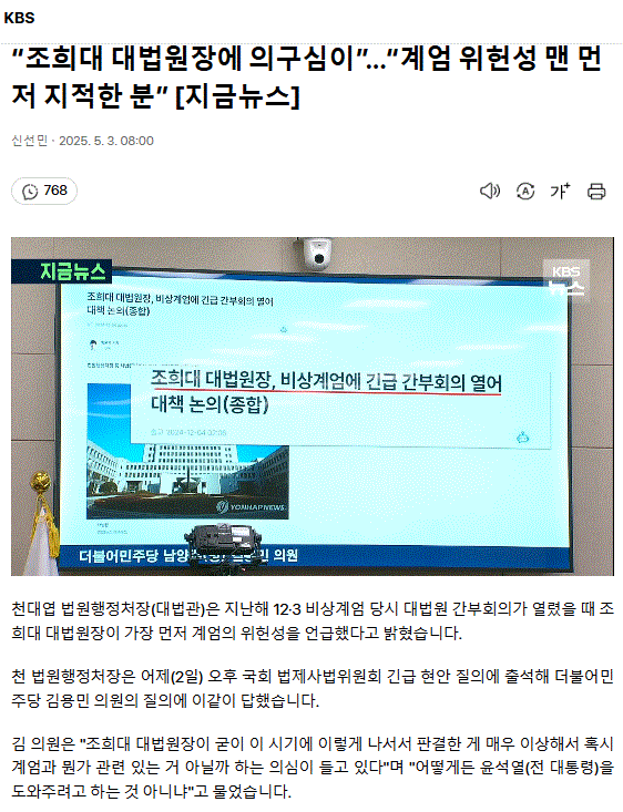 “조희대 대법원장에 의구심이”…“계엄 위헌성 맨 먼저 지적한 분” [지금뉴스]ㅡ 내란 동조세력 인증하니