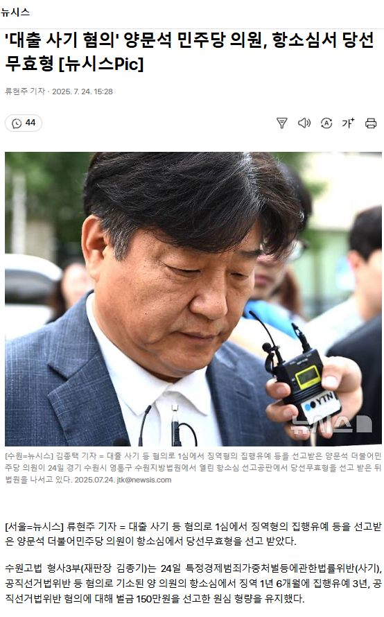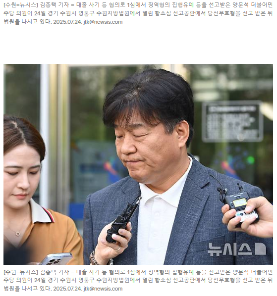 '대출 사기 혐의' 양문석 민주당 의원, 항소심서 당선무효형 [뉴시스Pic]