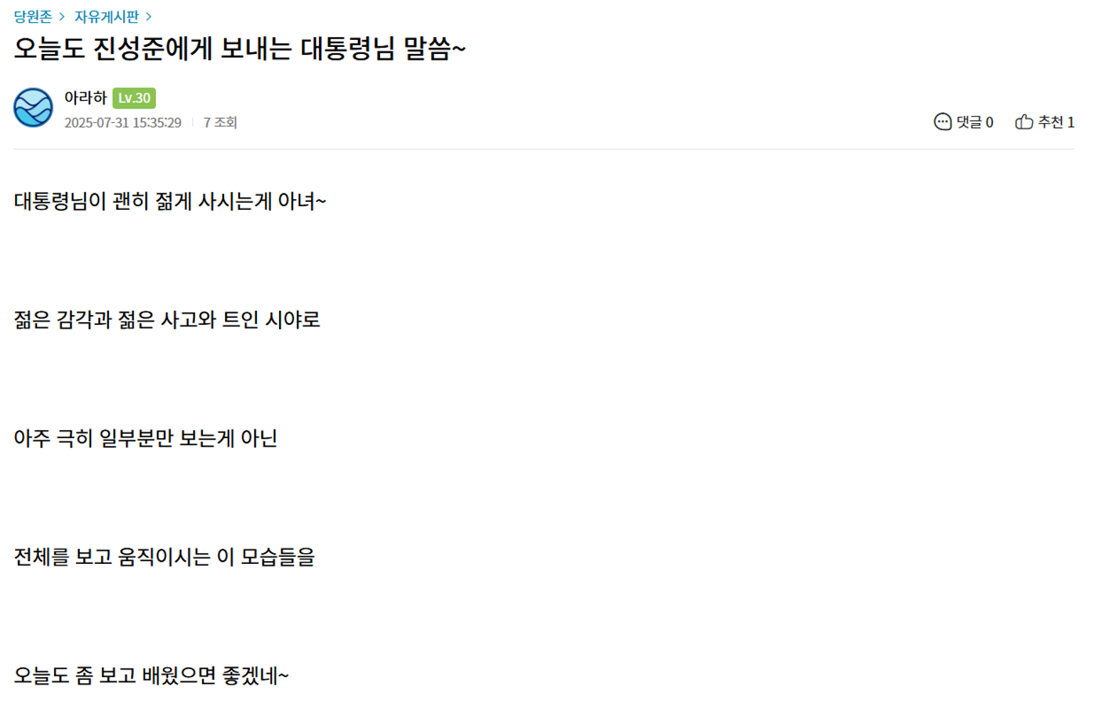 민주당 의원들이 저렇게 나이브하게 생각을 하고 있으니, 윤석렬 멧돼지같은 인간에게 정권을 넘긴거 아닙니까. 문재인 시즌 2로 다시 반복하려나 봅니다. 실수는 한번하면 실수지만, 다시 반복이 되면 그때부터는 범죄가 되는 거죠. 오늘 하루종일 가슴이 답답합니다.
