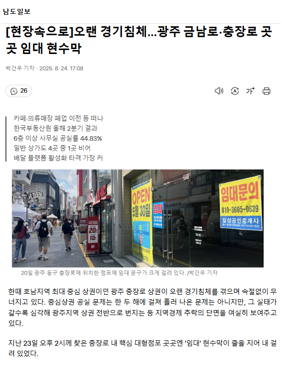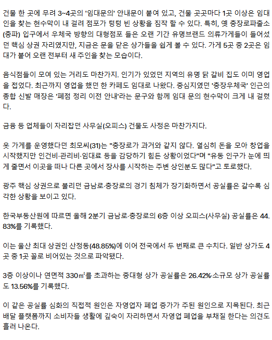 [현장속으로] 오랜 경기침체… 광주 금남로·충장로 곳곳 임대 현수막