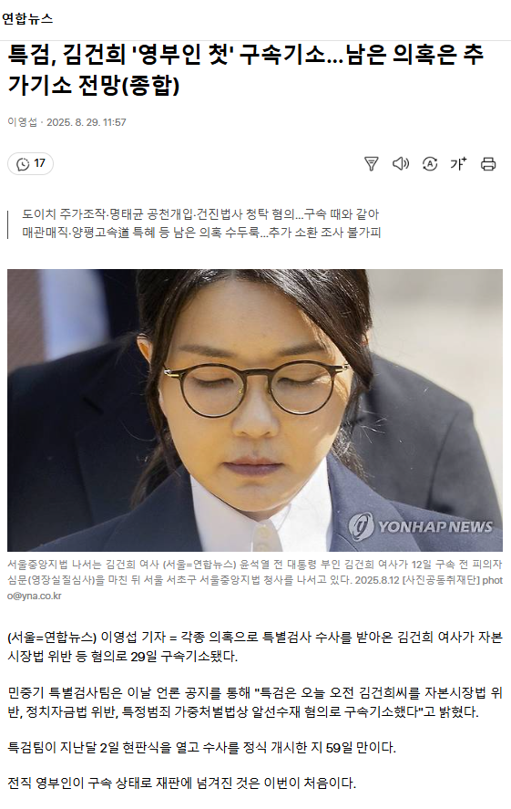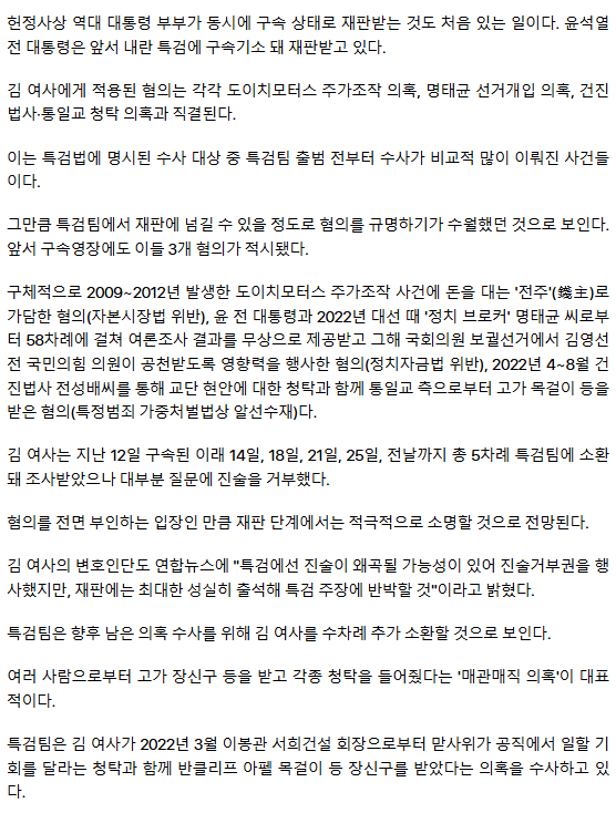 특검, 김건희 '영부인 첫' 구속기소… 남은 의혹은 추가 기소 전망 (종합)