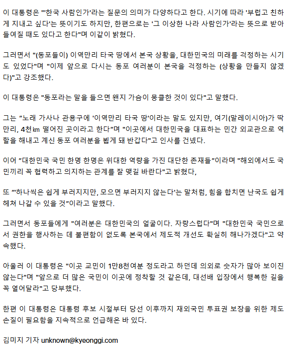 李대통령 "한국인이냐는 질문에 '두근두근' 않는 나라 만들 것"
