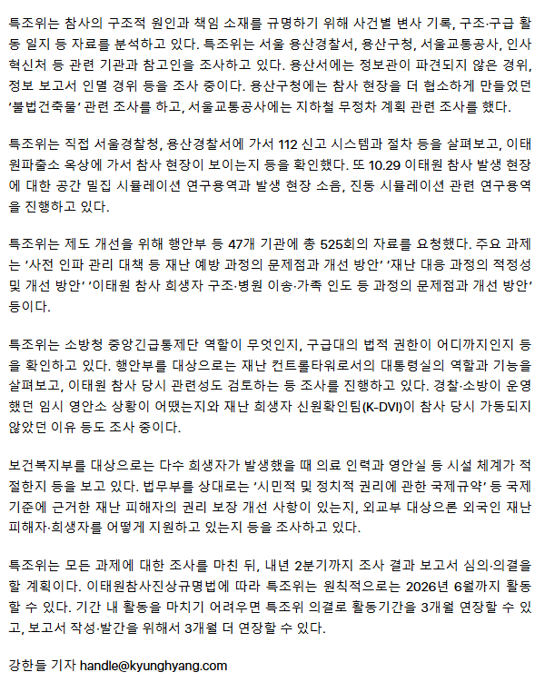 [이태원 참사 3주기] [단독] 이태원 특조위 조사, 어디로 향하나