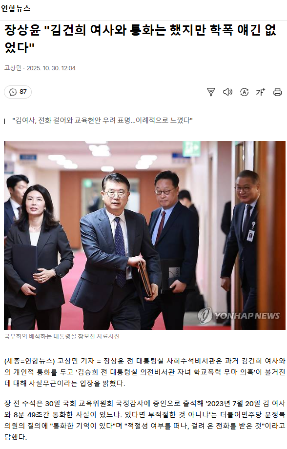 장상윤 "김건희 여사와 통화는 했지만 학폭 얘긴 없었다" ㅡ 거짓말 잘하는 상윤이