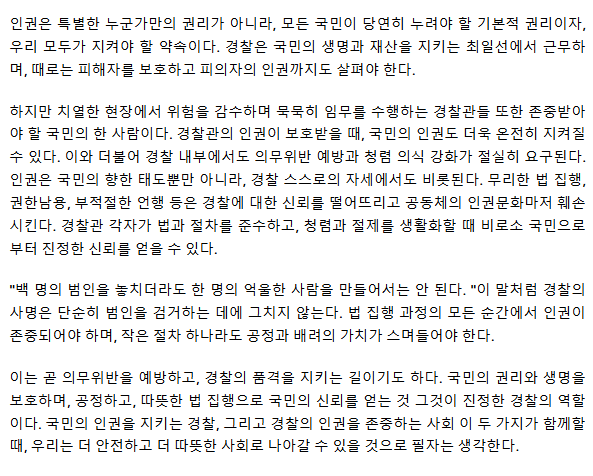 [시선] 인권으로 국민을 지키고, 인권으로 경찰을 세운다