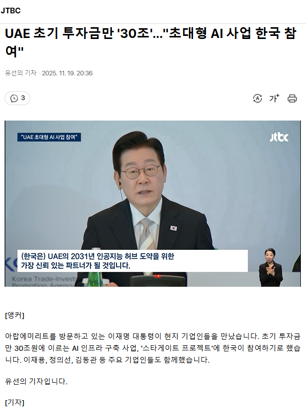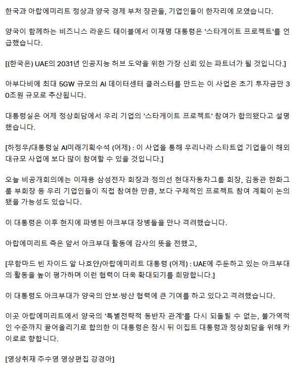 UAE 초기 투자금만 '30'"초대형 AI 사업 한국 참여"