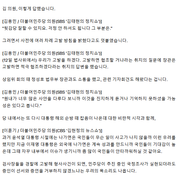 검사장 18명 고발 '패싱' 분노한 김병기에… 김용민 "뒷감당 잘 하겠다“ㅡ 당대표·원내대표가 무능