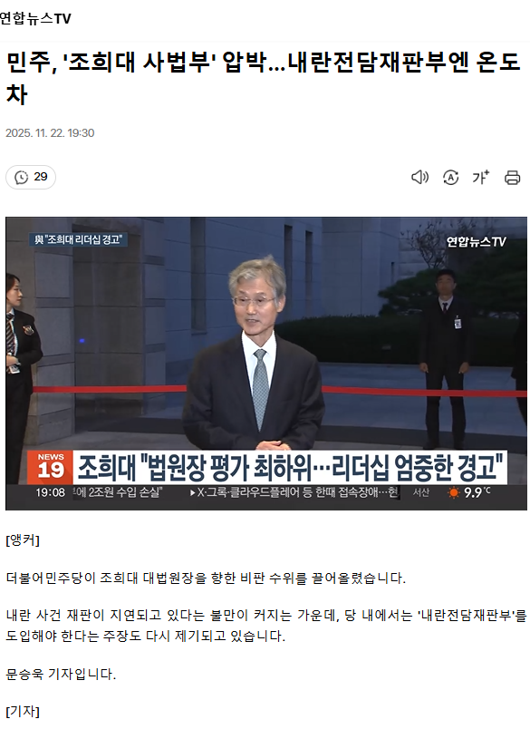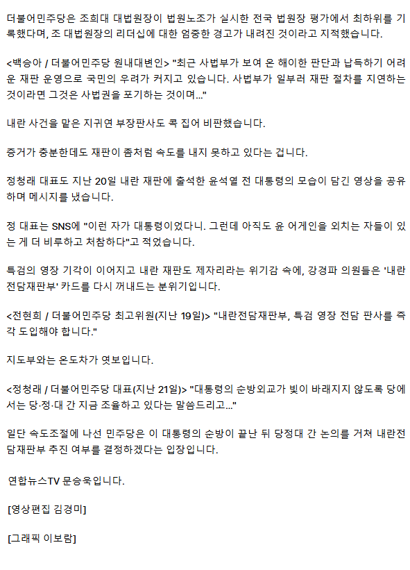 민주, '조희대 사법부' 압박… 내란전담재판부 엔 온도차 ㅡ 조희대를 파면, 특검에서 조사하라
