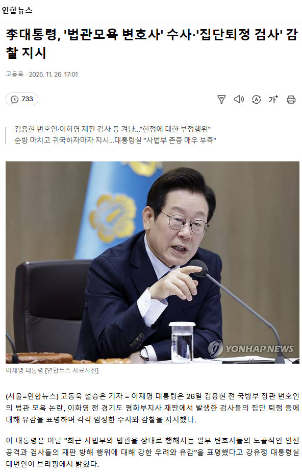 李대통령, '법관모욕 변호사' 수사·'집단퇴정 검사' 감찰 지시