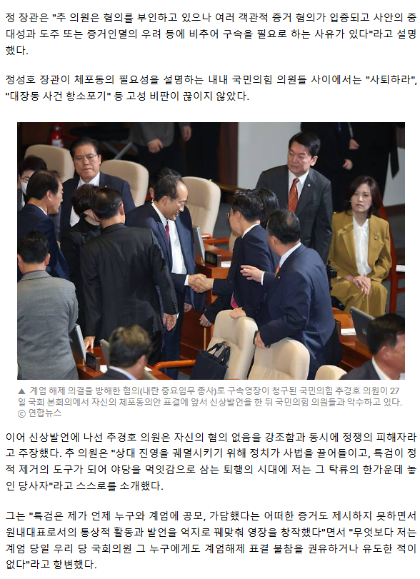 추경호 체포동의안 가결... 국민의힘은 전원 퇴장