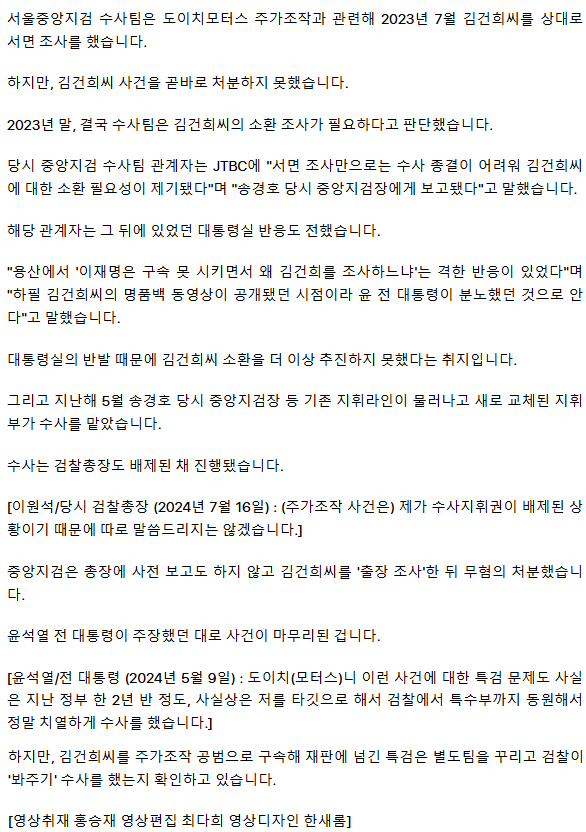 [단독] "용산 '이재명 구속 못하면서 왜 김건희 조사하냐' 격분"ㅡ 이재명은 죄 지은게 없네