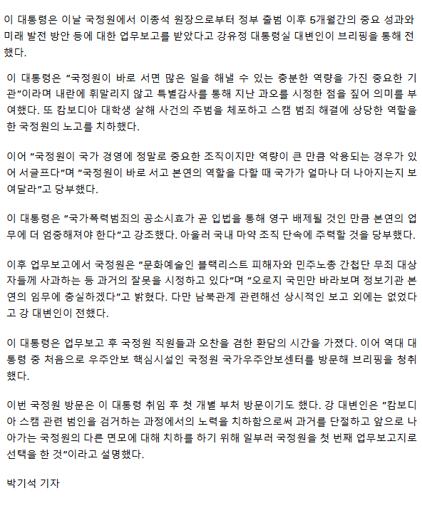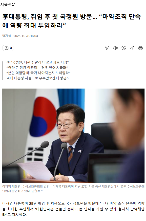 李대통령, 취임 후 첫 국정원 방문… “마약조직 단속에 역량 최대 투입하라”