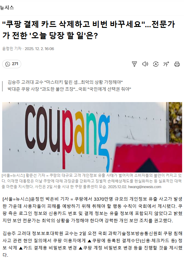 "쿠팡 결제 카드 삭제하고 비번 바꾸세요"… 전문가가 전한 '오늘 당장 할 일'은?