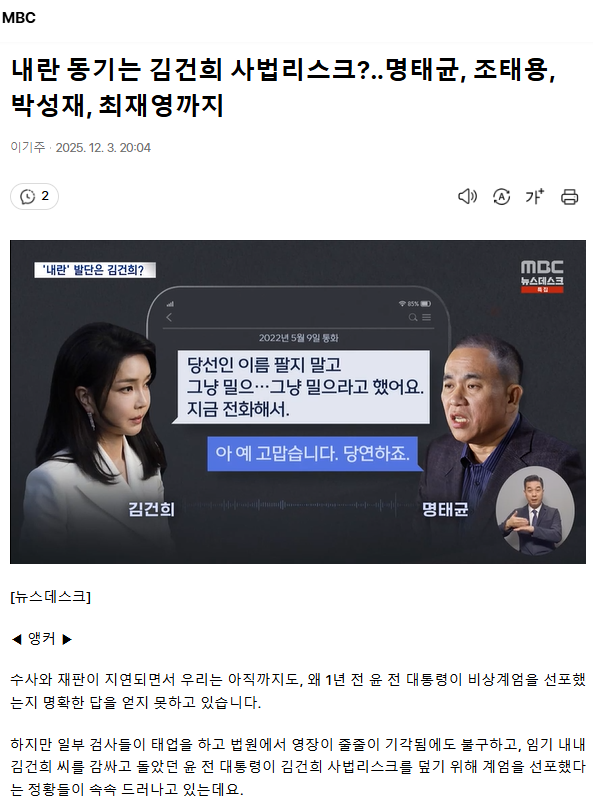 내란 동기는 김건희 사법리스크?‥명태균, 조태용, 박성재, 최재영까지
