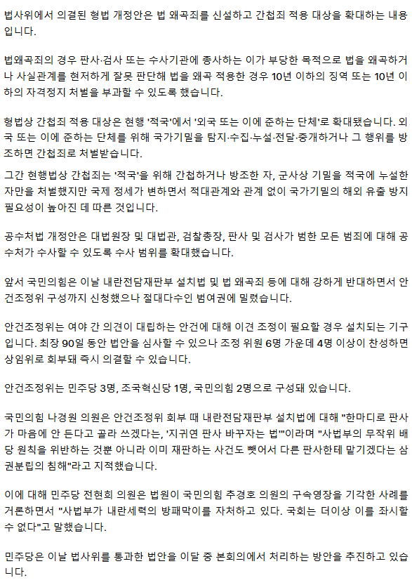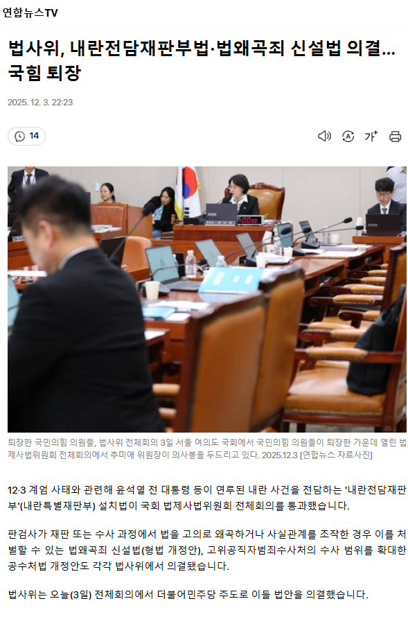 법사위, 내란전담재판부법·법왜곡죄 신설법 의결… 국힘 퇴장