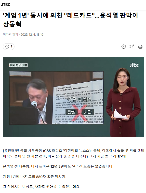 '계엄 1년' 동시에 외친 "레드카드"… 윤석열 판박이 장동혁 ㅡ 멍멍이 소리하는 동혁