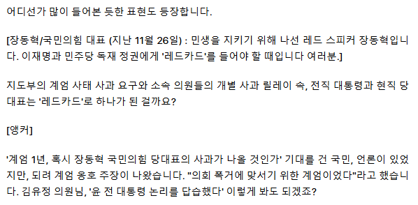 '계엄 1' 동시에 외친 "레드카드"윤석열 판박이 장동혁 ㅡ멍멍이 소리하는 동혁