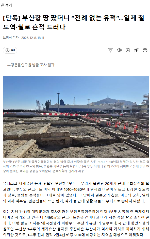 [단독] 부산항 땅 팠더니 “전례 없는 유적”… 일제 철도역·철로 흔적 드러나