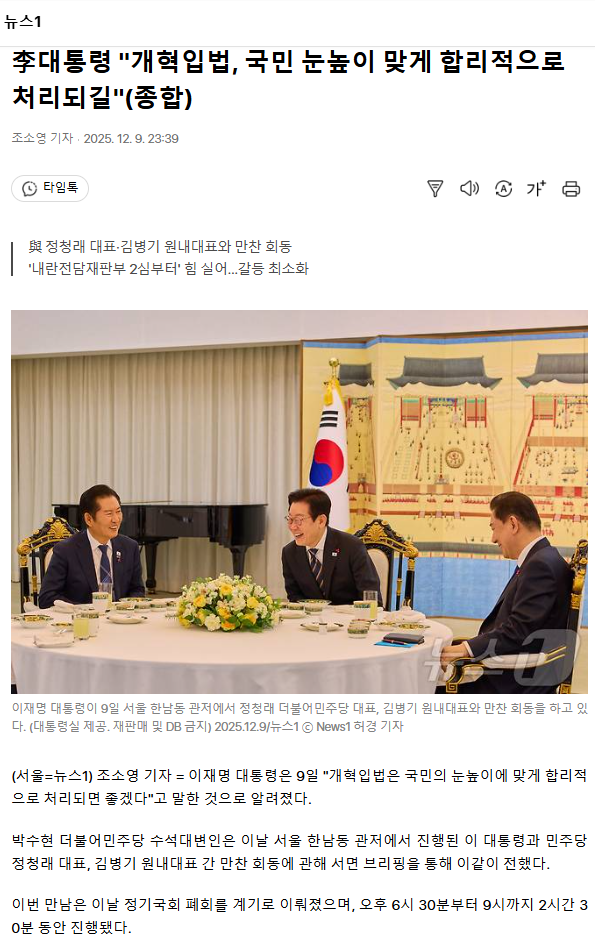 이재명대통령님 식견을 따라 갈자 누가 있을지? "지혜롭게 입법하시라 합리적으로 개혁 입법하시라 위헌소지가 있다면 내란전담재판부를 2심부터 가동하게 하는것이 맞다"