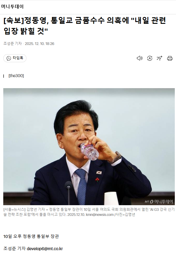 [속보] 정동영, 통일교 금품수수 의혹에 "내일 관련 입장 밝힐 것"