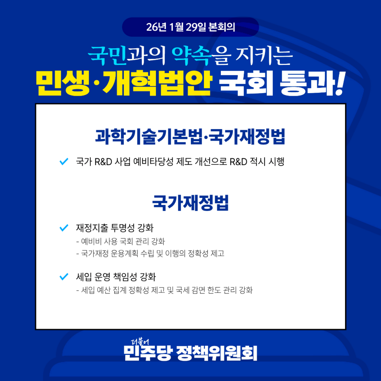 제68차 원내대책회의 모두발언 □ 일시 : 2026년 2월 10일(화) 오전 9시 30분□ 장소 : 국회 본관 원내대표회의실 ■ 한병도 원내대표 회의에 앞서 어제 오전 가평 육군 헬기 추락 사고로 순직하신 두 분의 명복을 빕니다. 조국을 지키기 위해 끝까지 임무를 수행하다 희생하신 두 분의 명복을 빌며, 유가족과 동료 장병들께 진심으로 위로의 말씀을 전합니다. ‘민생경제 입법추진 상황실’이 문을 열었습니다. 멈춰 선 민생법안들을 실어 나를 입법 고속도로 관제센터입니다. 어느 상임위가 막혔는지 주 단위, 월 단위로 정밀 점검해 정체 구간은 즉시 뚫고 우회로를 찾아서라도 법안의 도착 시간을 민생의 시계에 맞추겠습니다. 민주당은 이재명 정부와 한 몸처럼 뛰어 경제 회복의 골든타임을 지키겠습니다. 관세 압박에 대응할 대미투자특별법을 신속하게 처리하겠습니다. 아동수당 지급 연령과 지급액을 올리는 아동수당법, 필수의료 집중 지원을 담은 필수의료법, 전세사기 피해자 지원을 위한 전세사기피해자법 등 2월 임시국회를 시작으로 이재명 정부 국정과제와 시급한 법안 129건을 최대한 처리하기 위해 속도를 내겠습니다. 부동산감독원 설치법이 오늘 발의됩니다. 망국적 부동산 투기를 반드시 뿌리 뽑겠습니다. 집은 삶의 터전이지, 투기 수단이 되어서는 안 됩니다. 시세 조작과 전세 사기로 서민의 꿈이 짓밟히는 반칙의 시대를 이제는 끝내야 합니다. 그간 부처별로 쪼개져 투기 세력의 놀이터가 되었던 감독의 사각지대를 완전히 없애야 합니다. 부동산판 금감원을 가동해 상시적 모니터링과 정밀 타격으로 불법 투기 세력이 우리 시장에 발붙이지 못하도록 만들겠습니다. 국민의힘은 이재명 정부와 더불어민주당의 부동산 정책을 두고 억지 땡깡이라며 본질을 흐리고 있습니다. 서민의 눈물을 닦아주려는 정부의 손을 뿌리치고, 투기 세력의 방패막이를 자처하는 것이야말로 진정한 억지 땡깡입니다. 시장의 반칙을 바로잡는 것은 국가의 당연한 책무이고 상식의 회복입니다. 더불어민주당은 정상적인 거래는 철저히 보호하되, 불법과 편법에는 무관용 원칙으로 대응할 것입니다. 더불어민주당은 어떤 방해에도 굴하지 않고 국민의 소중한 주거권을 반드시 사수하겠습니다. ■ 한정애 정책위의장 국내 2위 가상자산 거래소인 빗썸에서 62만 원 상당 이벤트 금액 지급 과정에서 62만 개 비트코인이 지급되는 초유의 금융사고가 발생하였습니다. 금액으로는 61조 원이 넘는 금액입니다. 빗썸에서 발생한 비트코인 오지급 사건은 단순한 운영 실수를 넘어서 가상자산 거래소의 장부 거래와 또 내부 통제 시스템의 취약성을 여실히 드러낸 사례입니다. 지난해 3분기 공시한 자료에 따르면, 빗썸이 직접 보유한 비트코인은 175개로 이번에 잘못 지급한 62만 개는 보유 코인 대비 3542배에 달합니다. 실제에 보유하지 않는 수량이 발행되고 즉시 지급되었고 이 과정에서 보유 자산을 초과하는 대규모 물량이 지급됨에도 불구하고 이를 차단하거나 경고하는 시스템적 필터링 자체가 없었습니다. 거래소의 장부 거래 시스템이 실물자산의 뒷받침이 없이도 운영될 수 있다는 위험을 스스로 증명한 셈입니다. 리워드를 받은 일부 이용자가 이를 현금화하기 위해 매물을 쏟아내면서 빗썸 거래소 내 비트코인 가격이 순간적으로 약 10% 이상 급락했습니다. 가격 하락에 따른 강제청산, 패닉 셀·투매 등 공포 심리에 휩쓸린 저가 매도 등이 발생할 경우, 시장 왜곡에 따른 소비자 피해는 불가피하다는 것도 이번 기회에 확인된 것입니다. 이렇듯 국내 빅3 업체조차 장부와 보유 가상자산간 검증 체계, 다중 확인 절차, 인적오류 제어장치 등에 취약성이 있다는 것이 확인된 것입니다. 사태 초기 빗썸은 내부 전산, 즉 장부만 정리되면 끝나는 문제인 것처럼 사태를 축소하려 했습니다만, 이번 일은 가상자산에 대한 신뢰 기반을 흔드는 문제로 보다 근본적인 대책 마련이 시급합니다. 현재 1,100만 명 이상이 가상자산 거래소를 이용하고 있고 향후 다양한 토큰 증권 상품 및 스테이블 코인이 도입될 경우, 거래량은 폭발적으로 증가할 것입니다. 당정은 함께 가상자산 2단계 입법인 디지털자산기본법 제정을 조속히 추진해 거래소의 구조적 문제를 개선하겠습니다. 내부통제 기준 마련 의무 부과, 외부 기관의 주기적 가상자산 보유 현황 점검 의무화, 전산사고 등의 발생 시 가상자산사업자의 무과실책임 규정, 대주주 적격성 심사 등을 통해 시스템의 맹점을 해결하고 지배 구조의 분산을 통해 국민이 신뢰할 수 있는 가상자산 거래의 토대를 마련해야 합니다. 이번 주 내 상임위 차원의 현안질의를 시작으로 법안 추진에 속도를 내겠습니다. 2월 국회 내 법안을 발의할 수 있도록 하고 입법에 더욱 박차를 가하겠습니다. 야당의 적극적인 협조를 당부합니다. 부동산 정상화를 위한 당·정·청의 의지는 확고합니다. 정부는 공급 확대 대책을 발표했고, 동시에 공급 물량이 일부 다주택자에게 독점되는 비정상적인 구조를 바로잡겠다는 원칙도 분명히 했습니다. 9일 한국부동산원에 따르면 강남 3구가 포함된 서울 동남권, 강남·서초·