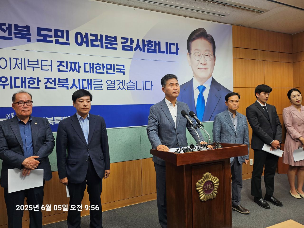 - 2025년 06월 05일 오전10시 전북특별자치도당 선대위 이재명 대통령 당선 감사 기자회견