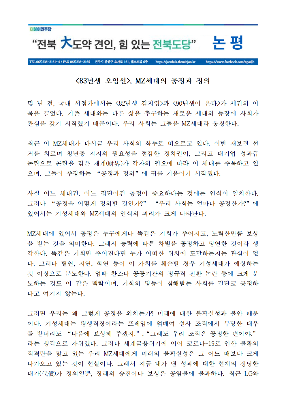 [논평] 일상 복귀의 유일한 희망, 백신 접종!