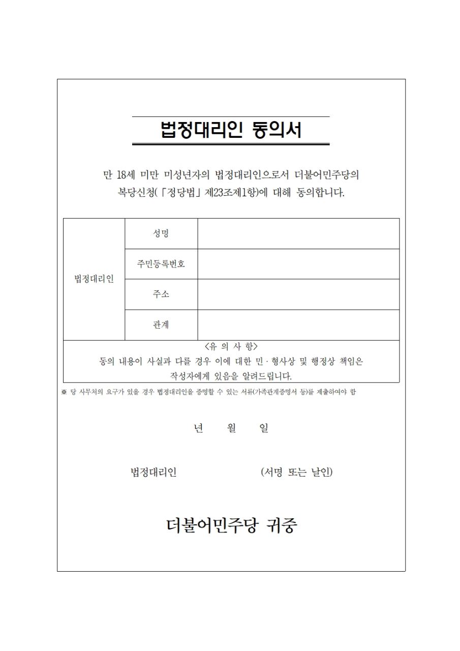 법정대리인 동의서