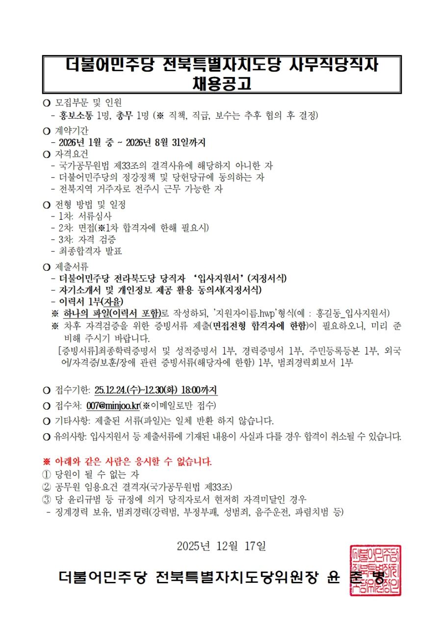 더불어민주당 전북특별자치도당 사무직당직자 채용공고문.hwp
