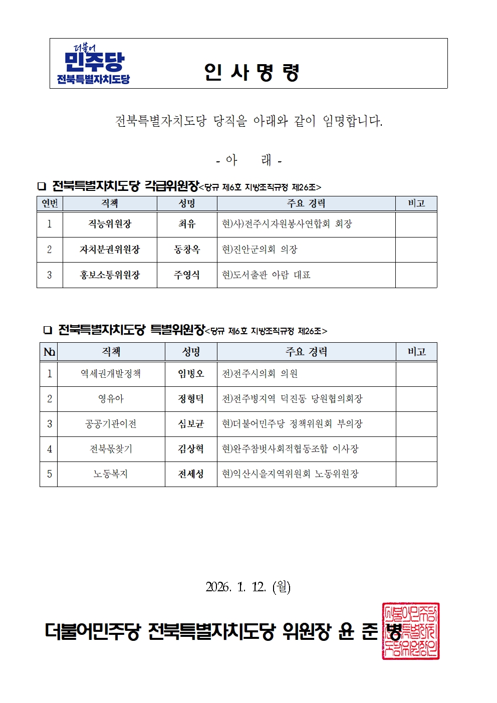 2026 더불어민주당 전북특별자치도당 제2차 역량 강화 아카데미 안내