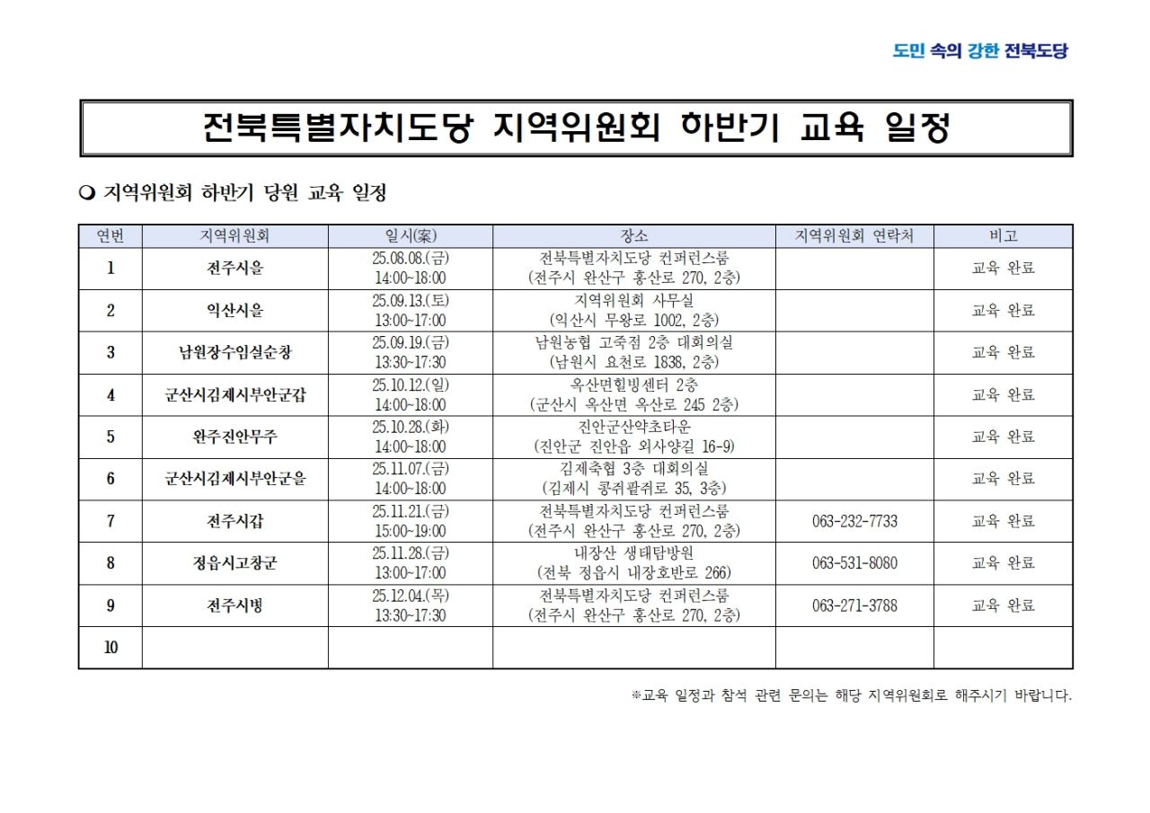 2025년 전북특별자치도당 지역위원회 하반기 당원교육 일정
