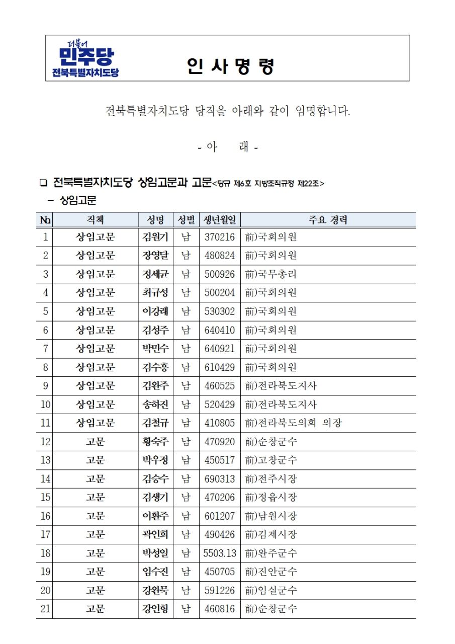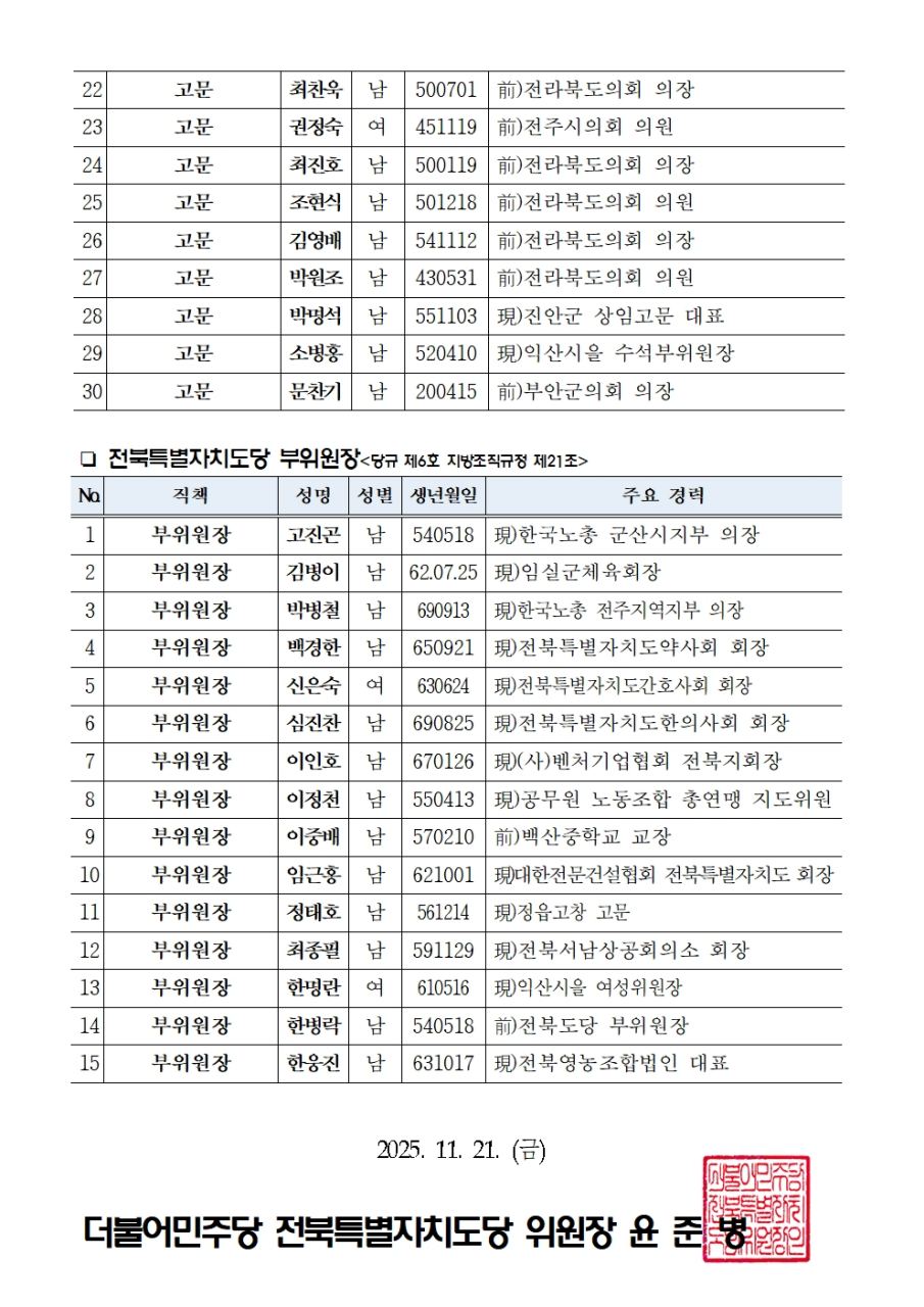 전북특별자치도당 인사명령(2025.11.21)