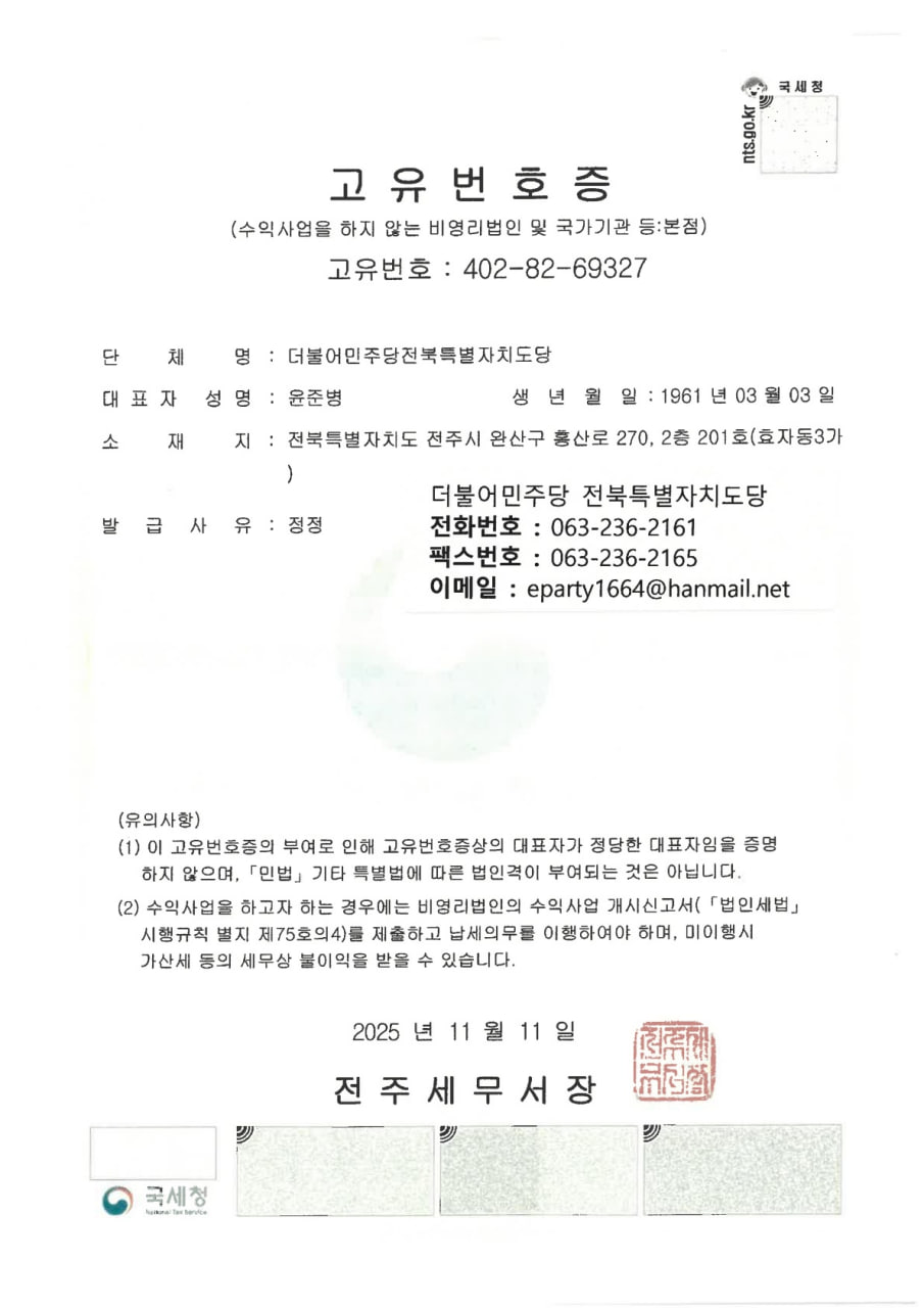더불어민주당 전북특별자치도당 사업자 사본