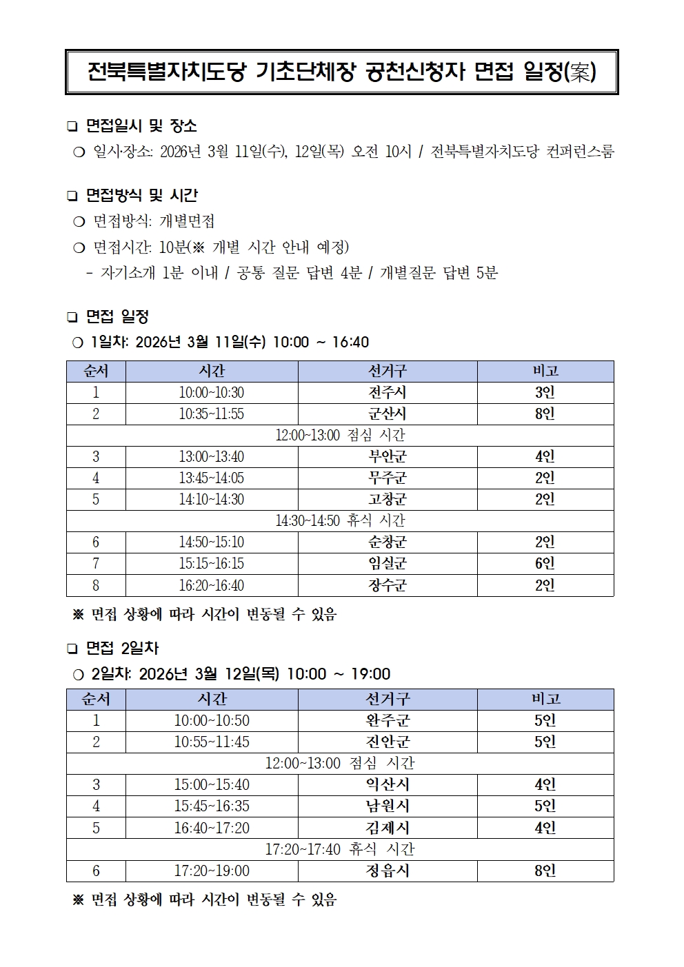 면접 인원수는 공천신청 후보자 기준입니다.