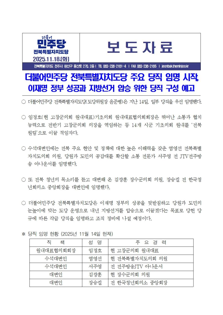[보도자료]더불어민주당 전북특별자치도당 공천관리위원장 내정은 사실이 아닙니다