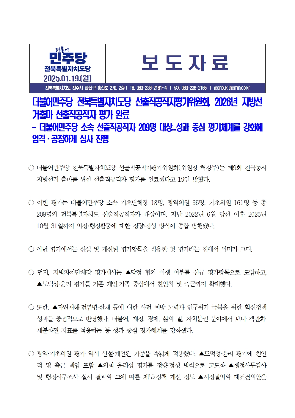 [보도자료] 더불어민주당_선출직평가위_지방선거출마_선출직공직자_평가_완료