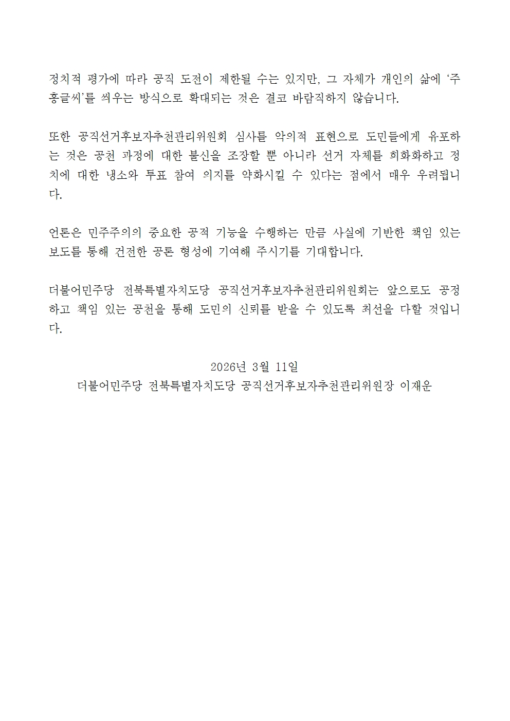 260311_입장문民_공관위_정해진_기준과_절차에_따라_엄정하고_공정하게_진행돼_v1_0.hwp